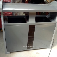 【表面处理】垃圾桶本身经喷砂处理去油去锈后,钢板表面抗紫外线丙稀酸油漆多层喷涂。